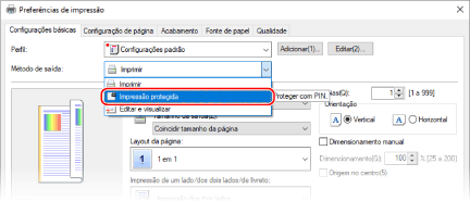 Imprimir um documento protegido por um PIN (Impressão segura)