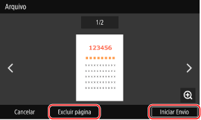 Se existirem páginas que não pretende enviar, abra a página e prima [Excluir página].
