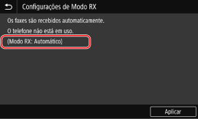 Depois de apresentada a mensagem [Configurações definidas.], é apresentado o ecrã [Configurações de Modo RX].