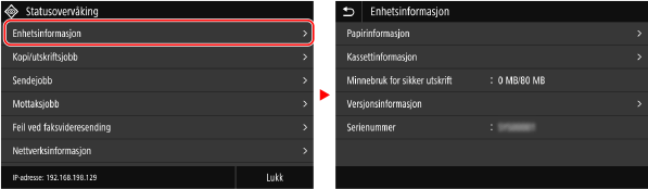 Betjeningspanelet bruker en berøringsskjerm. Berør knappene og elementene som vises på skjermen med fingrene når du vil bruke dem.