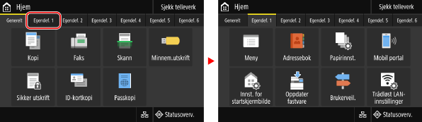 Berør skjermen og sveip med fingerspissen. Skjermbildet flytter seg i den retningen du sveipte fingeren. For eksempel flytter skjermbildet [Hjem] seg til kategorien i retningen du sveipte fingeren.