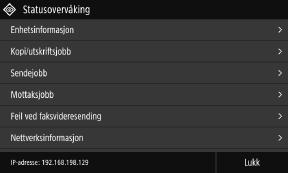 Dette skjermbildet når du trykker på [Statusoverv.] på skjermbildet [Hjem] og andre steder.