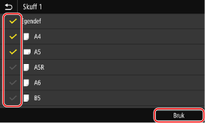 Merk av i boksene for hvilke papirformat som skal skjules, og klikk på [Bruk].