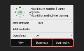 Når du vil skanne flere sider, plasserer du dem på glassplaten og trykker på [Skann neste].