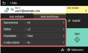 Sjekk at mottakeren er korrekt og trykk deretter på [Start skanning].