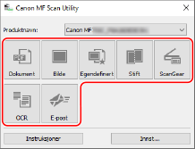 Velg skannerdriver (ScanGear MF eller WIA) for maskinen og konfigurer skanneinnstillingene.