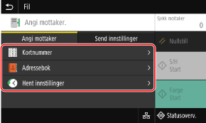 Hvis mottakeren ved sending er begrenset på grunn av godkjenningsinnstillingene for send-funksjonen, kan du ikke angi en annen mottaker. Kontakt administrator hvis du trenger mer informasjon.