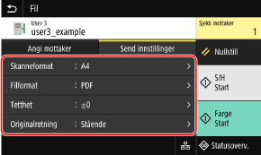 Konfigurer innstillinger for skanning på fanen [Send innstillinger].
