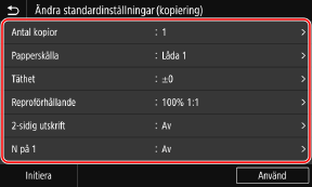Återställa standardinställningar till fabriksinställningarTryck på [Initiera] [Ja] på skärmen i steg 4. |