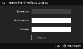 När autentiserad sändning (LDAP-serverautentisering) har angetts visas skärmen för inloggning till autentiserad sändning vid skannings- och faxfunktioner. Ange användarnamnet och lösenordet som hanteras med LDAP-servern för att logga in.