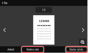 Om det finns någon sida som du inte vill skicka öppnar du sidan och trycker på [Radera sida].