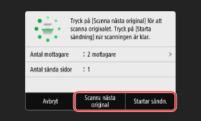 När du har skannat alla dokument trycker du på [Startar sändn.] eller [Förh.gr & skicka].