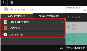Ange mottagare på fliken [Ange mottagare]. Ange mottagare