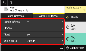 Ange skanningsinställningar på fliken [Skicka inställningar]. Skanningsinställningar