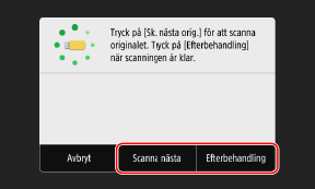 Om du vill fortsätta att skanna placerar du originalen på glasskivan och trycker på [Scanna nästa].