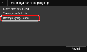Efter att meddelandet [Inställningar konfigurerade.] visats öppnas skärmen [Inställningar för mottagningsläge].