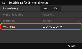 Du kan se enhetens MAC-adress när enheten är ansluten till trådbundet LAN.