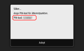 När den här skärmen visas måste du registrera WPS PIN-koden på den trådlösa LAN-routern inom 10 minuter.