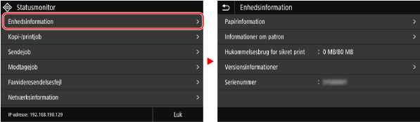 Berør skærmen, og svirp med din fingerspids. Skærmen bevæger sig i den retning, du svirpede din finger. F.eks. bevæger skærmen [Hjem] sig én side i den retning, du svirpede med fingeren.