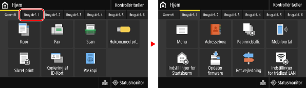 Når du trykker på en fane, vises skærmen for den valgte fane.