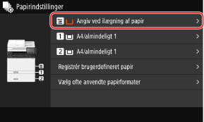 På betjeningspanelet skal du trykke på [Papirindstilli.] på skærmen [Hjem].