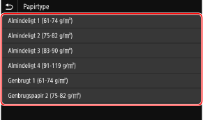 Vælg den papirtype, der skal registreres.