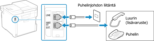 Yhdistä toimitettu puhelinjohto laitteen puhelinlinjaliitäntään (LINE) ja seinässä olevaan puhelinpistorasiaan.