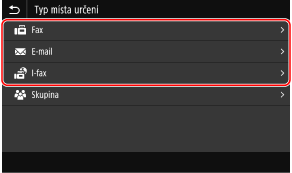 K ukládání e-mailových adres (e-mail, elektronický fax) a faxových čísel můžete použít následující metody: Uložte místa určení přímým zadáním informací o nich.