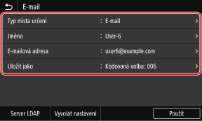 Jméno a místo určení je zadáno v adresáři na obrazovce uložení.