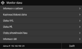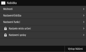 ] na ovládacím panelu. Ve výchozím nastavení se obrazovka [Domů] zobrazí po zapnutí napájení, ihned po zavření úvodní obrazovky a ihned po přihlášení. Obrazovka [Domů]