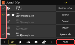 Pro zadávání míst určení z adresáře použijte obrazovku [Domů] nebo obrazovku skenování či faxování na ovládacím panelu.