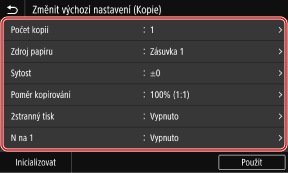 Vyberte položky nastavení, které chcete změnit, a změňte výchozí nastavení.