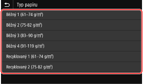 Po vložení papíru do víceúčelové přihrádky se na ovládacím panelu zobrazí obrazovka pro nastavení velikosti a typu papíru.