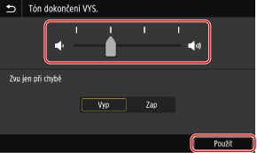 Přetažením posuvníku doleva nebo doprava nastavte hlasitost a stiskněte tlačítko [Použít].