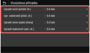 Příklad: Při úpravě pozice tisku přední strany papíru ve svislém směru