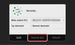 Chcete-li pokračovat ve skenování originálů, položte je na skleněnou desku a stiskněte tlačítko [Skenovat další].