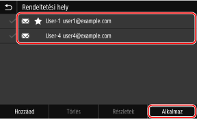 Ellenőrizze, hogy helyesek-e a csoporthoz hozzáadni kívánt címek, majd nyomja meg az [Alkalmaz] gombot.