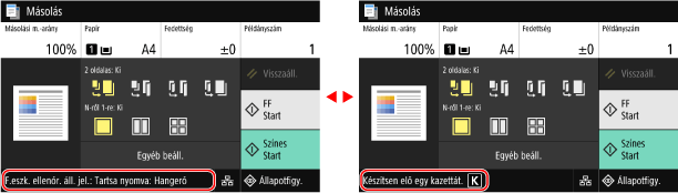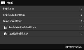 A beállítások automatikus törléseHa egy bizonyos ideig semmilyen műveletet nem végez, az éppen konfigurálás alatt lévő beállítások törlődnek a képernyőről, és megjelenik a [Főképernyő] képernyő. A beállítások törléséig eltelt idő és az ezután megjelenő képernyő egyaránt módosítható.