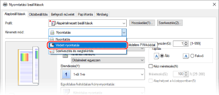 A [Kimeneti mód] menüpontban válassza a [Védett nyomtatás] lehetőséget.