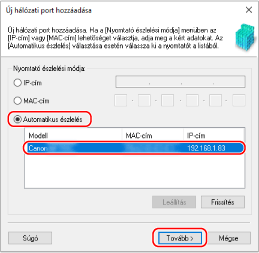 Válassza ki az [Automatikus észlelés] lehetőséget és a készüléket, majd kattintson a [Következő] lehetőségre.