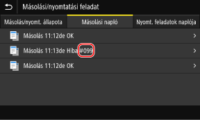 Ha nem lehet nyomtatni, nem lehet elvégezni a beolvasott adatok vagy faxok küldését vagy fogadását, illetve egyéb hiba esetén egy hibakód („#” jellel kezdődő háromjegyű szám) jelenik meg a jelentésben vagy a feladatnaplóban.