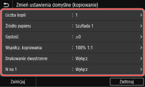 Możesz zmienić ustawienia domyślne dla skanowania, kopiowania i innych funkcji wywoływanych za pomocą panelu sterowania.