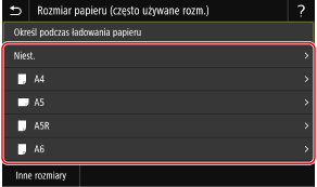 Naciśnij [Inne rozmiary], a następnie wybierz rozmiar papieru z wyświetlonej listy.