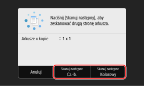 Dla każdego paszportu możesz wybrać tryb koloru (czarno-biały lub kolorowy). Aby skopiować następny paszport w trybie czarno-białym, naciśnij [Skanuj następne Cz.-b.]. Aby kopiować w kolorze, naciśnij [Skanuj następne Kolorowy].