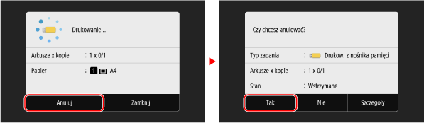 Aby anulować drukowanie, postępuj zgodnie z instrukcjami wyświetlanymi na ekranie.