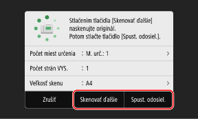 Ak chcete naskenovať ďalšie originály, umiestnite ich na predlohové sklo a stlačte [Skenovať ďalšie].
