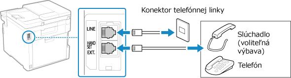 Pripojte dodaný telefonický kábel ku konektoru telefónnej linky (LINE) v zariadení a ku konektoru telefónnej linky na stene.