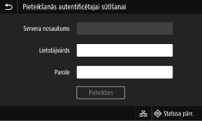 Ja ir iestatīta autentificētā sūtīšana (LDAP servera autentifikācija), tiek parādīts ekrāns “Pieteikšanās autentificētajai sūtīšanai”, kad veicat skenēšanas vai faksa darbības. Lai pierakstītos, ievadiet ar LDAP serveri pārvaldīto lietotājvārdu un paroli.