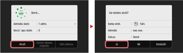 Lai atceltu skenēšanas operāciju, izpildiet ekrānā rādītās instrukcijas.