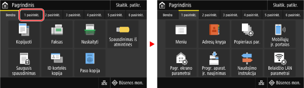 Palieskite ekraną ir brūkštelėkite piršto galiuku. Ekranas judės ta kryptimi, kuria brūkštelėjote pirštu. Pavyzdžiui, ekranas [Pagrindinis] pereis į skirtuką ta kryptimi, kuria brūkštelėjote pirštu.